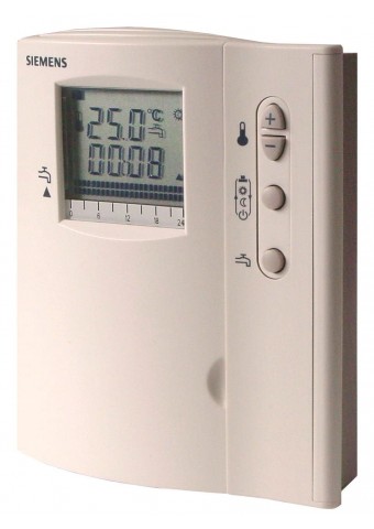 Raumtemperaturregler mit Wochenschaltuhr, LCD und Warmwassersteuerung. Ersatzgerät RDE100.1DHW hat die gleiche Funktionaltität mit neuem Design, grosses LCD und Touch-Technologie